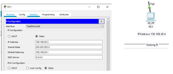 lakukan lagi konfigurasi ip address pada PC 1